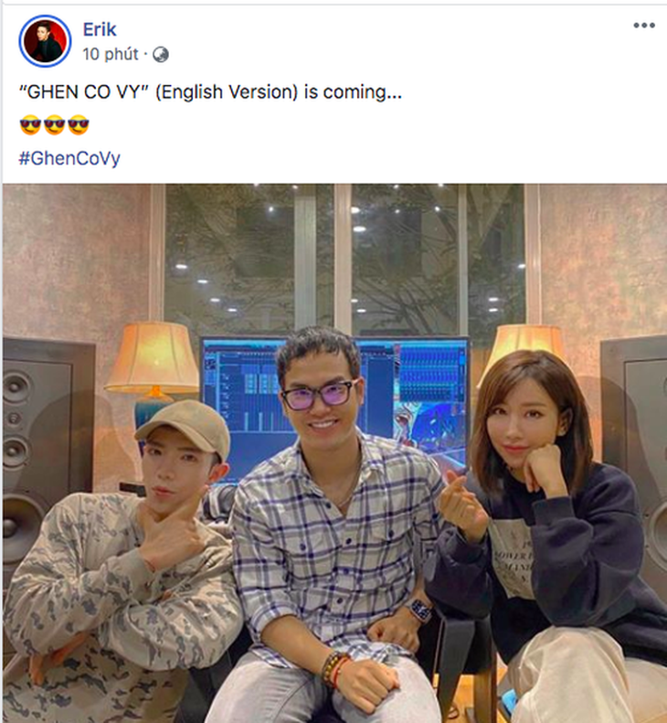 Mới đây nhất, trên trang cá nhân của mình, hai ca sĩ Min và Erik đã đăng tải hình ảnh cũng như dòng trạng thái gây chú ý người hâm mộ. Cả hai xuất hiện với nhạc sĩ Khắc Hưng trong phòng thu và bật mí MV Ghen Cô Vy sẽ có phiên bản tiếng Anh. Nếu như phiên bản tiếng Anh được ra mắt, sản phẩm âm nhạc của Việt Nam sẽ có cơ hội được lan rộng ra thế giới.