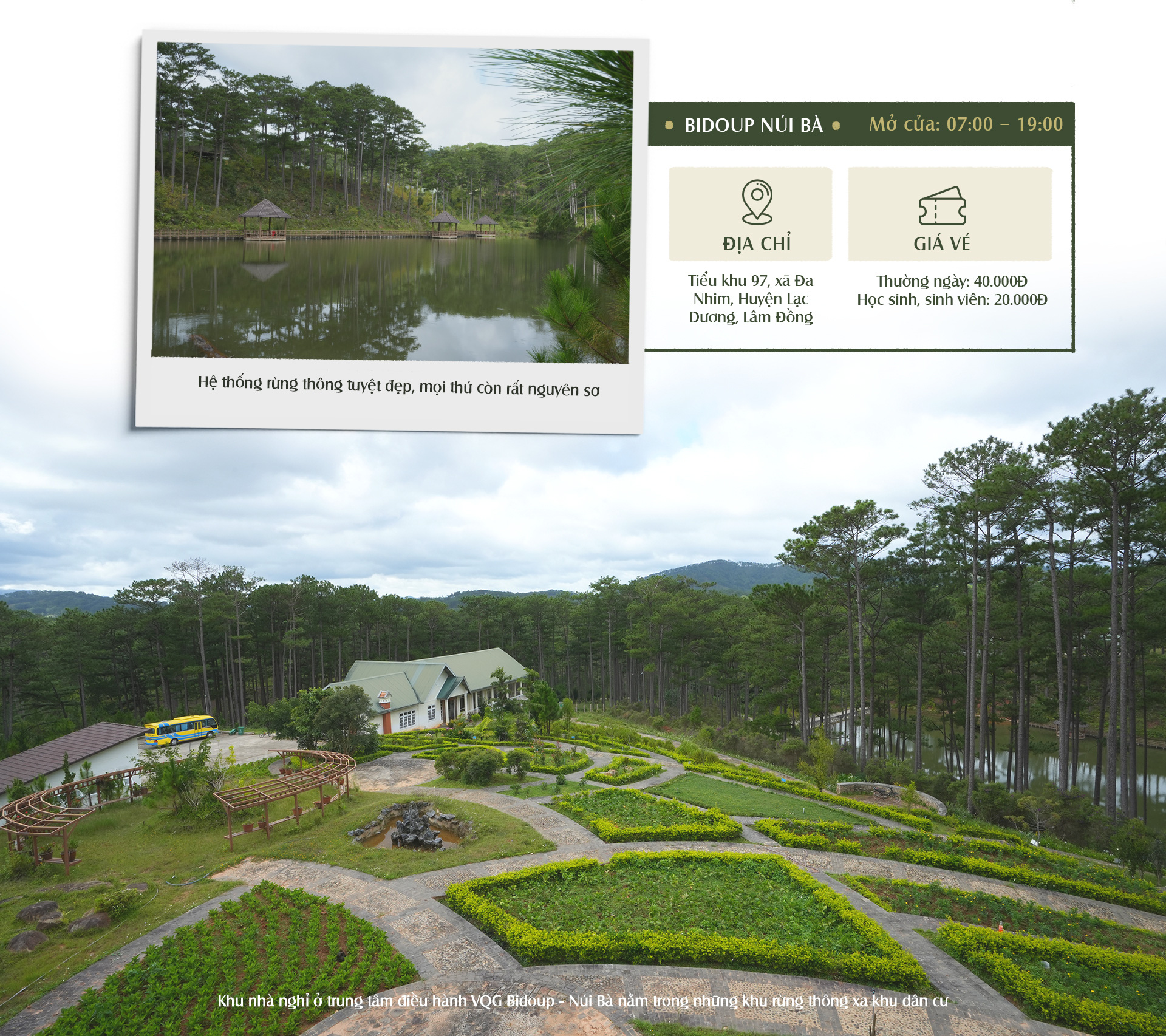 Với hệ thống rừng thông tuyệt đẹp, mọi thứ còn rất nguyên sơ và được xem là nguyên vẹn nhất tỉnh Lâm Đồng hiện nay, Vườn quốc gia Bidoup Núi Bà diện tích trên 65 ngàn ha là một trong những khu dự trữ sinh quyển lớn ở Việt Nam.