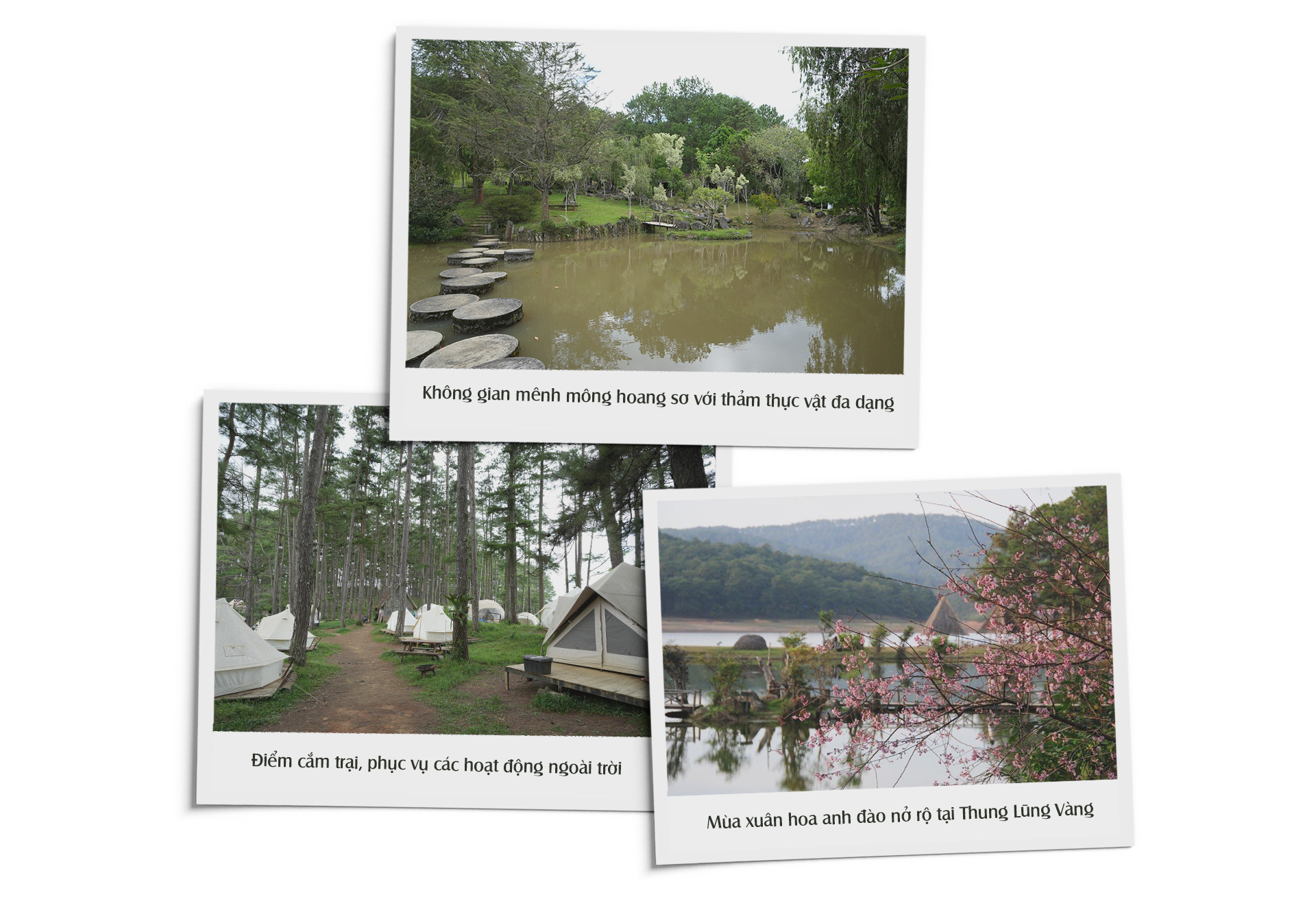 Thung Lũng Vàng trên cao nguyên Lâm Viên có diện tích rộng 16,9 hecta nằm giữa rừng thông rộng lớn, rất gần gũi với đất trời, không gian mênh mông hoang sơ với thảm thực vật đa dạng như hồ nước, vườn hoa, đồi thông... Xung quanh khu du lịch là những đổi cỏ xanh rì, dòng suối chảy hiền hòa, có những tảng đá to với những hình thù khác nhau được khai thác ở những nơi lân cận của các tỉnh khác khu vực Tây Nguyên.