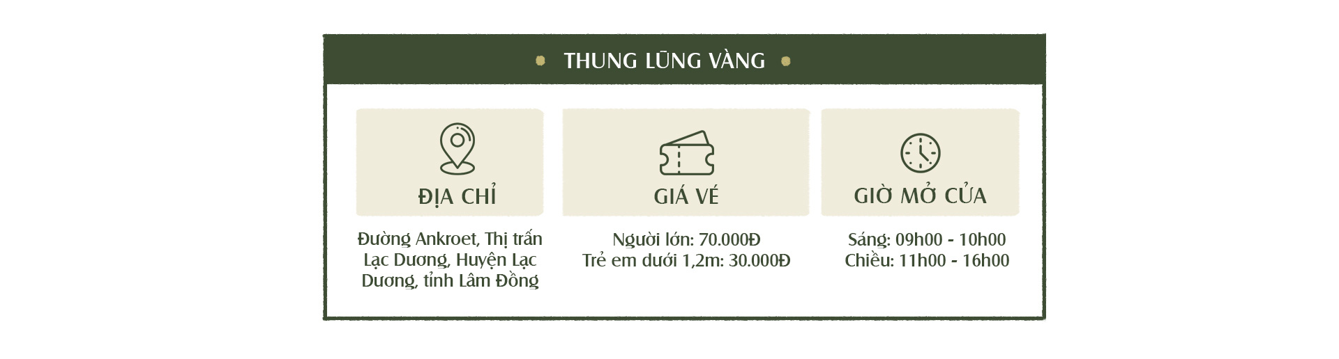 Thung Lũng Vàng chủ yếu hoạt động phục vụ du lịch sinh thái, bảo tồn thiên nhiên và khai thác cảnh quan. Đây còn là điểm chụp ảnh cưới, phục vụ hoạt động teambuilding, hoạt động ngoài trời, giao lưu văn hoá cồng chiêng, đốt lửa trại, du lịch nghỉ dưỡng… Ngoài ra, tại Thung Lũng Vàng còn có khu lưu trú, cắm trại qua đêm với các dịch kèm theo.