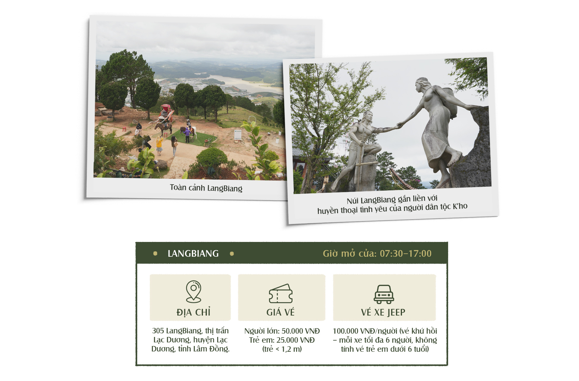 Đỉnh LangBiang với độ cao 2.167m so với mực nước biển, được ví là nóc nhà của thành phố Đà Lạt mộng mơ. Cao nguyên LangBiang uốn lượn ẩn chứa trong mình truyền thuyết về một tình yêu say đắm, vượt ra ngoài lễ giáo phong kiến.