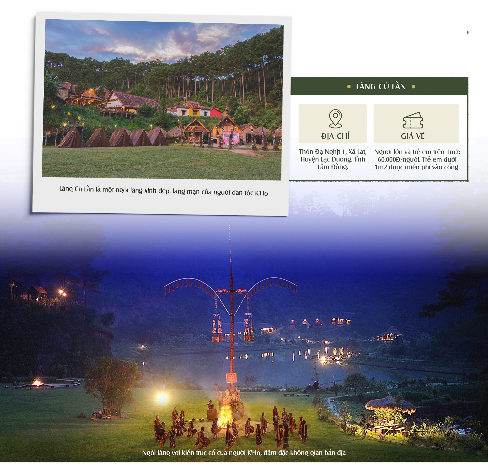 Làng Cù Lần là một ngôi làng xinh đẹp, lãng mạn của người dân tộc K'Ho nằm giữa rừng già nguyên sinh, rộng khoảng 30 hécta, được công nhận là một trong sáu ngôi làng cổ đẹp nhất Việt Nam. Đường đi đến làng rợp bóng thông rừng, cách trung tâm Đà Lạt khoảng 22km và chỉ mất khoảng 30 phút chạy xe để đến được làng.