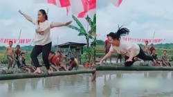 Tham gia trò chơi đập niêu đất, nam thanh niên bịt mắt, cầm gậy đi thẳng về phía khán giả khiến ai cũng hú hồn.