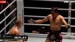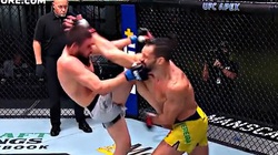 Nhân cơ hội lúc bắt tay chào nhau, nam võ sĩ quần đỏ đã tung cước đánh lén và bị đối thủ hạ knock out ngay sau đó.