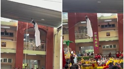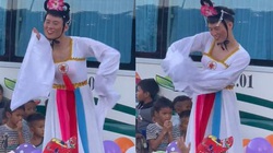 Chàng trai đóng giả gấu lầy lội yêu cầu chị Hằng phải thơm má thì mới trả Thỏ Ngọc khiến nhiều người xem phì cười.
