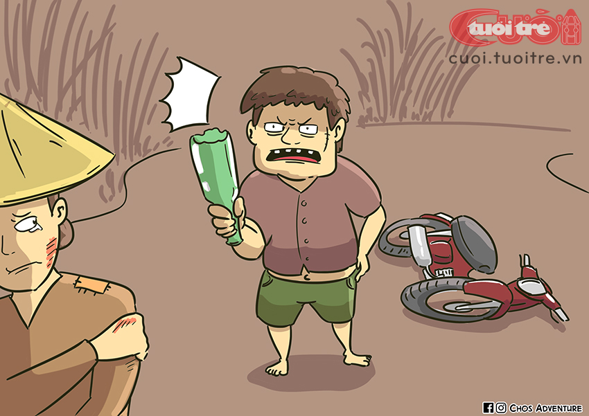Tiếng người dân la làng: "Chị Dậu tiêu rồi!". Chí Phèo lồm cồm bò dậy, chị Dậu cũng ráng gượng người đứng dậy. Chưa kịp hoàn hồn sau vụ va chạm, Chí Phèo đã đánh chị tới tấp vì cái tội "Đậu xe khi Chí Phèo đang lưu thông!".