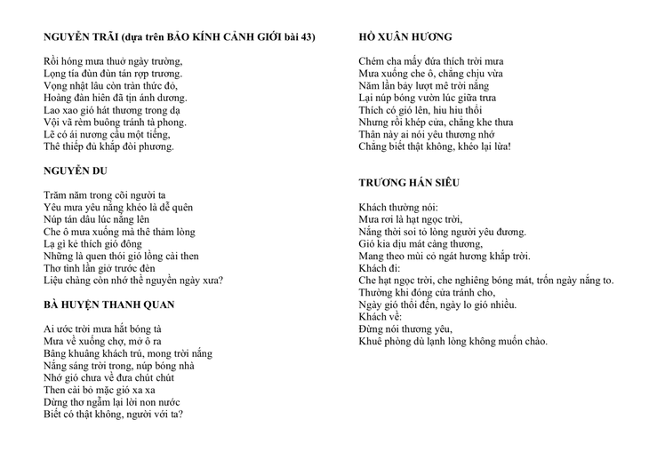 Cộng đồng mạng đang liên tục lan truyền cho nhau những bài thơ cải biên từ tác phẩm được cho là của William Shakespeare theo đúng phong cách của các thi hào Việt Nam nổi tiếng như: Nguyễn Du, Nguyễn Trãi, Hồ Xuân Hương, Bà Huyện Thanh Quan, Xuân Diệu và thậm chí cả các thi hào quốc tế khác là Aleksandr Pushkin và Silva Kaputikyan.
