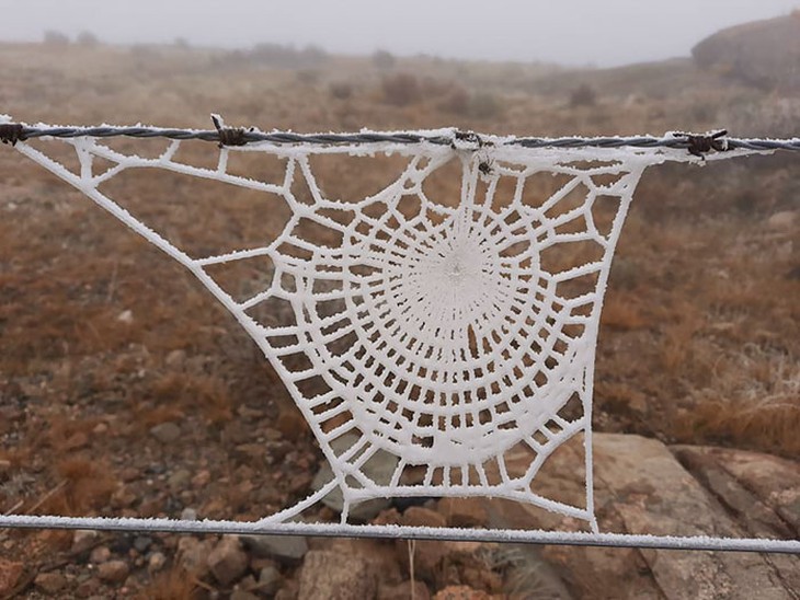 Mạng nhện được tuyết phủ khiến nó như được đan từ sợi len.
