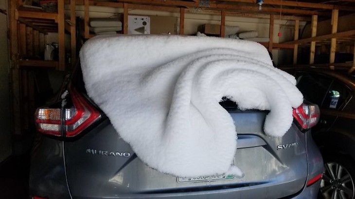 Không phải chiếc khăn tắm phủ ôtô đâu, là tuyết đó.