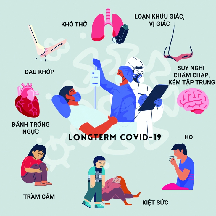 TTCT - Nhiều nghiên cứu ở các nước phương Tây cho thấy mắc COVID-19 và được chữa khỏi là một chuyện, nhưng bình phục lại là chuyện khác. Một khi đã chiến đấu với virus SARS-CoV-2, dù là vật lộn sinh tử hay chiến thắng nhẹ nhàng, cơ thể ta khó mà trở lại như lúc xưa. Minh họa: Marta Zubieta/The Bristol CableTheo hướng dẫn của Trung tâm Kiểm soát và phòng ngừa dịch bệnh của Mỹ (CDC), người bị COVID-19 ngoại trú có thể ngừng cách ly bản thân khi họ không có dấu hiệu sốt trong 72 giờ liên tục (không sử dụng thuốc hạ sốt). Đồng thời, các triệu chứng hô hấp như ho và khó thở phải có sự cải thiện sau ít nhất một tuần. Khi điều kiện cho phép, xét nghiệm 2 lần liên tiếp, cách nhau ít nhất 24 giờ và đều cho kết quả âm tính cũng là một cách để xác định một người đã khỏi bệnh.Đối với bệnh nhân nhập viện với tình trạng từ nặng đến nguy kịch, hoặc người bị suy giảm miễn dịch nghiêm trọng, CDC đưa ra 3 tiêu chí: không có dấu hiệu sốt trong ít nhất 24 giờ (không sử dụng thuốc hạ sốt), các triệu chứng được cải thiện, và chỉ xem xét sau tối thiểu 10 ngày - tối đa 20 ngày (tính từ khi triệu chứng đầu tiên xuất hiện). Đồng thời, cần có tham vấn của các chuyên gia.Từ mùi vị méo mó đến rối loạn thần kinh Sáng sớm 15-1, một đại gia đình ở bang Texas, Mỹ đã mất hết nhà cửa sau một đám cháy dữ dội. Những thành viên lớn tuổi thậm chí suýt mất mạng, bởi họ đang say ngủ và không thể... ngửi thấy ngôi nhà đang cháy do di chứng mất khứu giác vì mắc COVID-19. May là cô bé Bianca Rivera (19 tuổi, không nhiễm virus) đã ngửi thấy mùi nhựa cháy và nhanh chóng báo động cho cả nhà.Nhiều bệnh nhân COVID-19 như nhà Rivera cũng mất khứu giác và/hoặc vị giác. Các giác quan này thường có thể được “bật” trở lại, song không ít người sống sót sau khi nhiễm bệnh vẫn đang bị ám ảnh bởi việc họ không thể phát hiện mùi của khí gas rò rỉ hoặc hỏa hoạn. Dù đã khỏi bệnh trong một thời gian dài, họ đang phải sống cùng tình trạng rối loạn khứu giác (parosmia), nghĩa là cảm nhận về mùi bị thay đổi.Với người bị loạn khứu giác, trước tiên hết chuyện ăn uống sẽ trở nên kinh khủng: rau quả có mùi xà phòng, hành tỏi và thịt có vị chua, cà phê thì bốc mùi xăng... Cả thế giới đảo lộn khi những món họ mong nhớ trong những ngày điều trị bệnh, giờ được ăn thì chỉ gây buồn nôn.73% bệnh nhân COVID bị rối loạn khứu giác ở Pháp cho biết tình trạng này “ảnh hưởng đáng kể đến chất lượng cuộc sống”, theo một khảo sát được công bố hồi đầu tháng 6 trên tạp chí Chemical Senses của Nhà xuất bản ĐH Oxford. Trong vòng 9 tháng (tính từ tháng 4-2020), trải qua nhiều làn sóng dịch ở Pháp, 3.111 bệnh nhân đã gửi báo cáo về tình trạng của mình.Nghiên cứu trên cũng chỉ ra rằng: ở nhiều người, chứng loạn khứu giác liên quan đến virus corona có thể kéo dài đến vài tháng (lâu hơn suy nghĩ ban đầu). Thực tế là chỉ có 1 phần 5 số người được hỏi cho biết khứu giác đã trở lại bình thường ở thời điểm họ tham gia khảo sát.Vậy, chuyện gì đã xảy ra? Các tế bào thần kinh khứu giác được cố định với nhau bằng bộ khung là các tế bào biểu mô. Theo một giả thuyết nổi trội trong giới khoa học, dường như các tế bào biểu mô quan trọng này đã bị tổn thương, làm sai lệch các thông tin truyền đến não. Ngay cả khi các tế bào này tự sửa chữa, chúng vẫn có thể kết nối sai, mùi món nọ gắn vào thức kia, dẫn đến chứng rối loạn khứu giác.Các nhà khoa học đang cố gắng tìm hiểu về tình trạng này ở những người được chữa khỏi COVID-19, bao gồm cả câu hỏi “mất bao lâu để bình phục hoàn toàn”. Một nghiên cứu trên tạp chí học thuật Laryngoscope hồi tháng 11-2020 đánh giá cao phương pháp tập luyện khứu giác: ngửi đi ngửi lại các mùi hương mạnh (như hoa hồng, chanh, đinh hương và bạch đàn) để kích thích khứu giác. Ngày nay, những hội nhóm chia sẻ về chứng loạn khứu giác đang phát triển nhanh chóng trên Facebook, song song đó là nhiều dự án hỗ trợ, cung cấp từ podcast đến bộ dụng cụ “luyện mũi”.Chứng loạn khứu giác không phải là rắc rối duy nhất con virus tai quái để lại trong đầu của người bệnh. Theo một nghiên cứu với hơn 230.000 bệnh nhân, chủ yếu ở Mỹ, cứ 3 người sống sót sau COVID-19 thì có 1 người được chẩn đoán bị rối loạn thần kinh hoặc tâm lý trong vòng sáu tháng sau đó.Được công bố vào tháng 4 trên tạp chí Lancet Psychiatry, nghiên cứu xem xét 14 rối loạn khác nhau như xuất huyết não, đột quỵ do thiếu máu cục bộ, mất trí nhớ, mất ngủ... Trong khi các triệu chứng thần kinh thường nghiêm trọng hơn ở những bệnh nhân nhập viện, chúng cũng phổ biến trong nhóm bệnh nhân điều trị ngoại trú.Các kết quả này gợi ý rằng đại dịch có thể kéo theo một “đợt sóng lớn” khác - liên quan đến các vấn đề về t