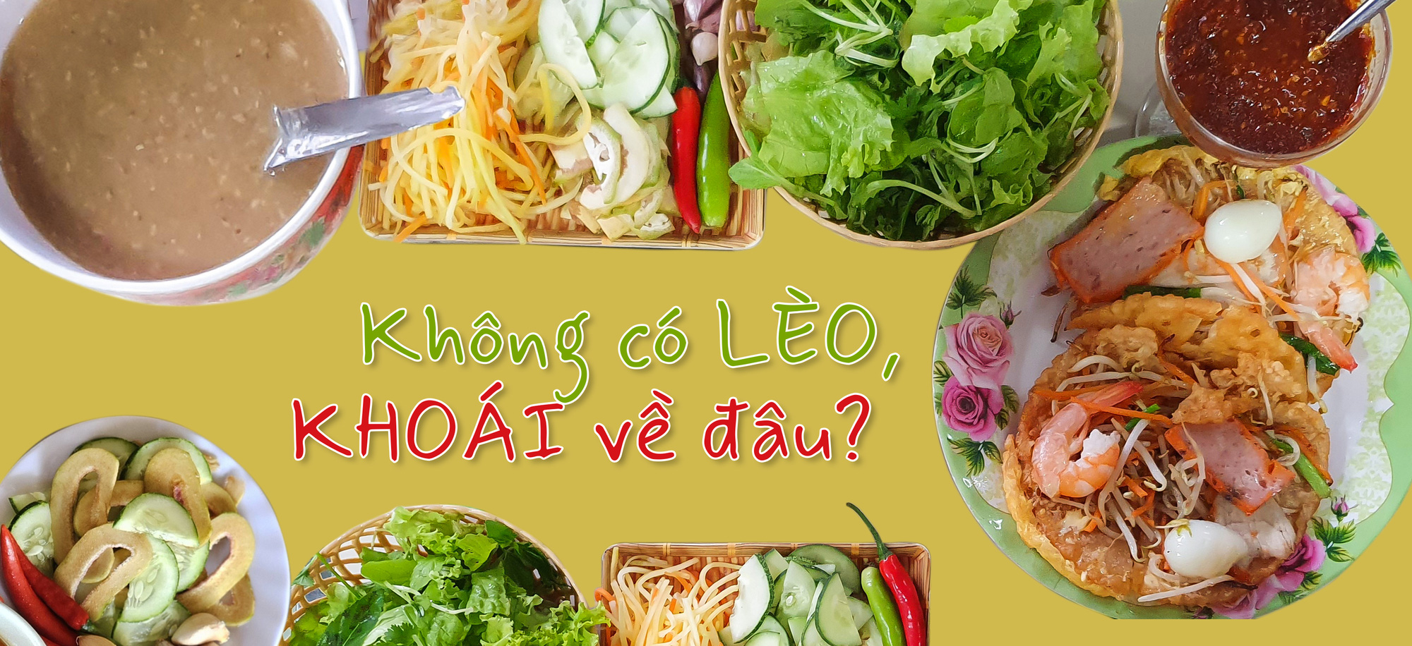 Rau ăn kèm? Bánh khoái có rau thơm, rau cải, chuối chát, khế chua và vài lát trái vả. Trái này mới "độc địa", chát chát, bùi bùi, the the…