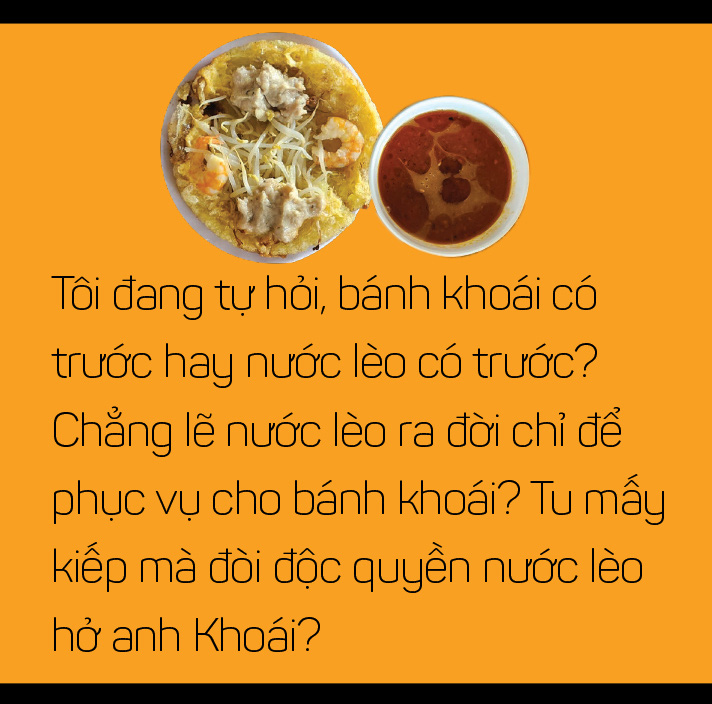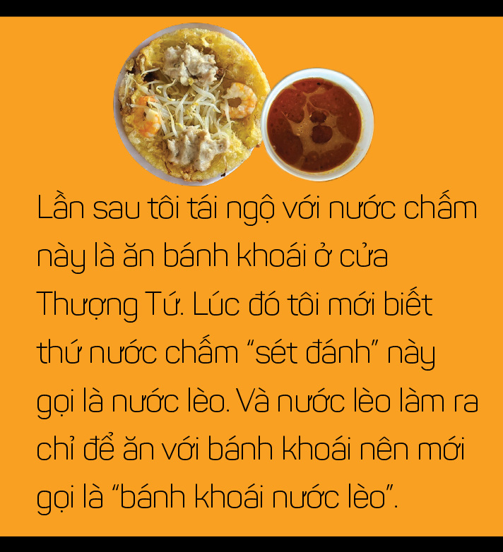 Đến giờ tôi vẫn chưa hiểu vì sao bánh khoái lại phải ăn với thứ nước chấm mà dân Huế gọi là nước lèo, thay vì ăn với nước mắm pha.
