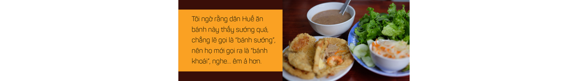 Người Huế phát âm thành "bánh khoái". Tôi nhờ người bạn là dân Huế sệt, phát âm chữ "khói". Nghe rõ là "khọi" chứ "khoái" hồi nào!