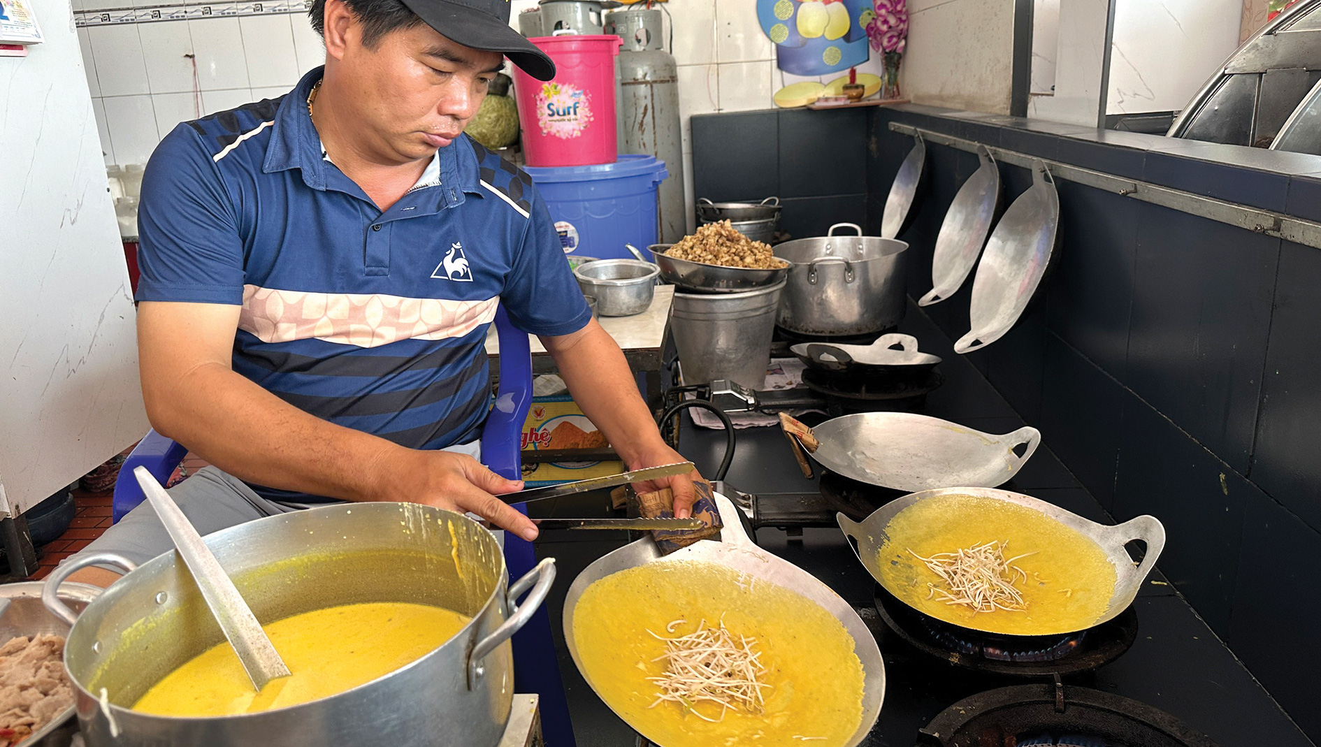 Đâu ai nghĩ tới người trong bếp cặm cụi, tỉ mỉ chế biến nước lèo để làm thăng hoa bánh khoái. Người ta mặc định nước lèo chỉ là thứ phụ thuộc, ăn theo bánh khoái.