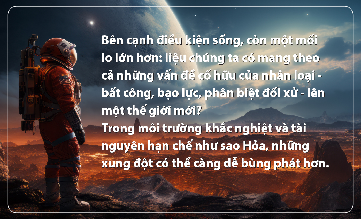 Nhưng mọi thứ mới thực sự bước vào giai đoạn thử thách khi con người bắt đầu hiện diện, không chỉ để đến làm nhiệm vụ, mà để sống lâu dài trên hành tinh đỏ.