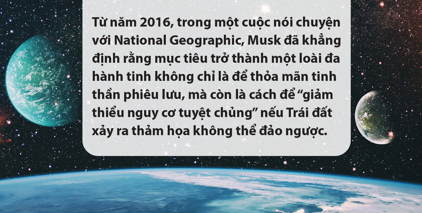 Tham vọng về sao Hỏa không tách rời các hoạt động khác của Elon Musk trên Trái đất. Từng bước đi táo bạo của ông trong thế giới công nghệ, từ SpaceX đến Neurlink và chính trị đều hướng đến một mục đích: mở rộng biên giới sinh tồn của loài người ra khỏi hành tinh này.