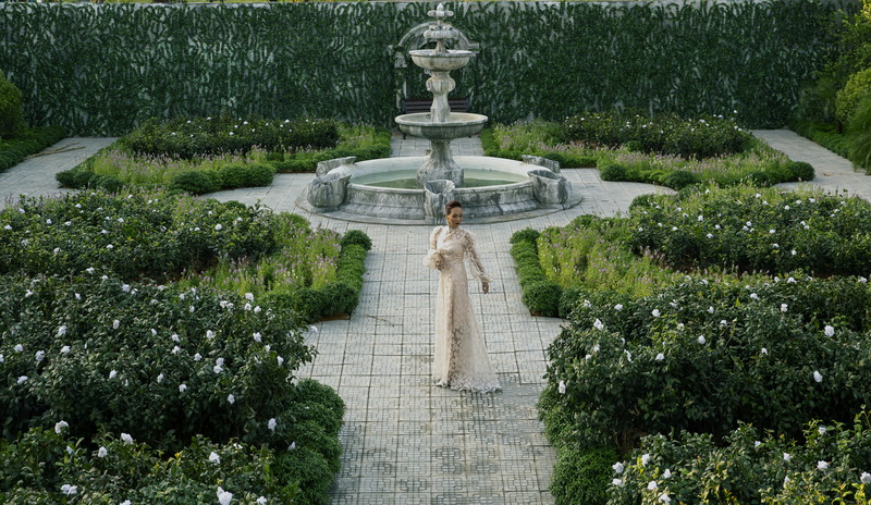Đạo diễn Bảo Nhân tiếp lời: “Không chỉ sử dụng hơn 2000 chậu bạch trà cùng nhiều loại cây trái đặc trưng xứ Huế gồm thanh trà, hồng huế, cam sành, chanh…, chúng tôi còn lắp đặt đêm đài phun nước, tượng nữ thần và tường bao được chạm trổ công phu nhằm tạo điểm nhấn. Sự kết hợp đầy mê hoặc giữa kiến trúc cổ điển Châu Âu với Châu Á vừa mang đến màu sắc độc đáo cho khu vườn, vừa thể hiện được vẻ nữ tính và đẳng cấp giàu sang của 3 nữ nhân nhà họ Lý”.