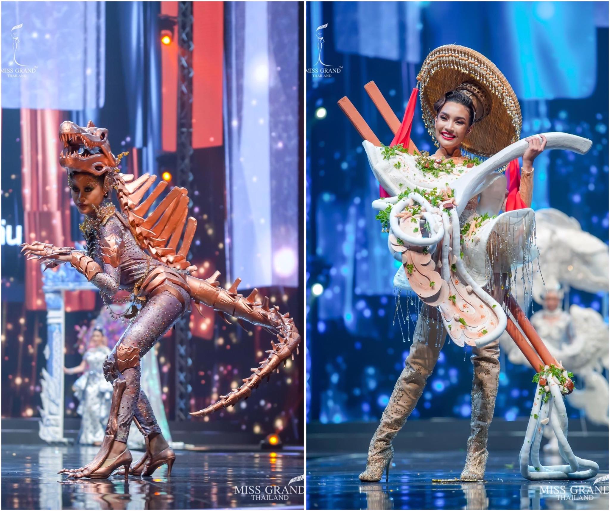 Khủng long, bò sữa, cá chép, bưởi da xanh... cứ thế nhảy xổ vào trang phục dân tộc Miss Grand Thailand 2020