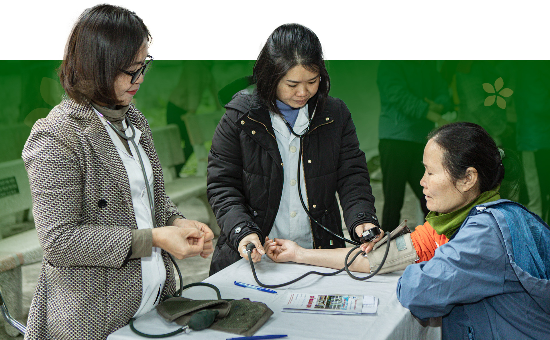 Trong không khí hân hoan của những ngày cuối năm, hàng ngàn người dân địa phương đã được kiểm tra sức khỏe lâm sàng bởi đội ngũ y, bác sĩ tận tâm, dưới sự hợp tác cùng Trung ương Hội chữ thập đỏ Việt Nam. Sau khi thăm khám, người dân còn được tặng thuốc miễn phí.