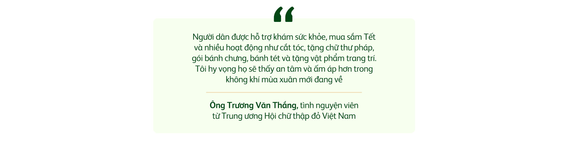 Trong khi đó, là người tham gia vô số chuyến thiện nguyện trong nhiều năm qua, ông Trương Văn Thắng, tình nguyện viên từ Trung ương Hội chữ thập đỏ Việt Nam bày tỏ sự trân trọng dành cho chương trình "Cùng cộng đồng đón Tết An Vui" với những ý nghĩa thiết thực, giúp giảm bớt nỗi lo âu, khó khăn của người dân có hoàn cảnh khó khăn trên cả nước.
