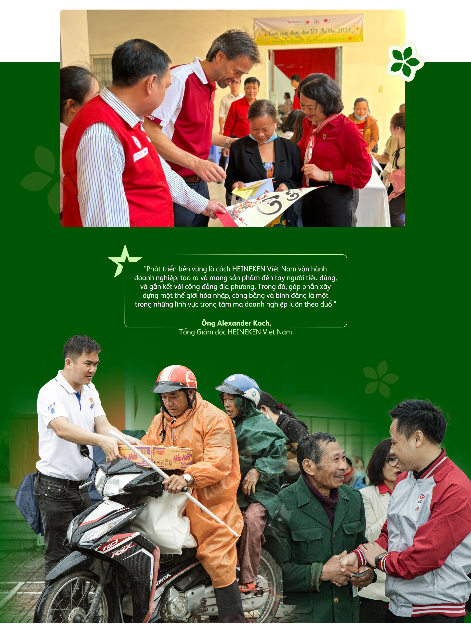 "Thông qua chương trình ‘HEINEKEN Cares - Chung tay sẻ chia, cùng cộng đồng đón Tết An Vui’, HEINEKEN Việt Nam và đối tác hy vọng có thể góp phần mang đến cho người dân ở những cộng đồng khó khăn một cái Tết đầy đủ, an vui và một mùa xuân hạnh phúc ấm áp hơn", ông Alexander Koch nhìn nhận.