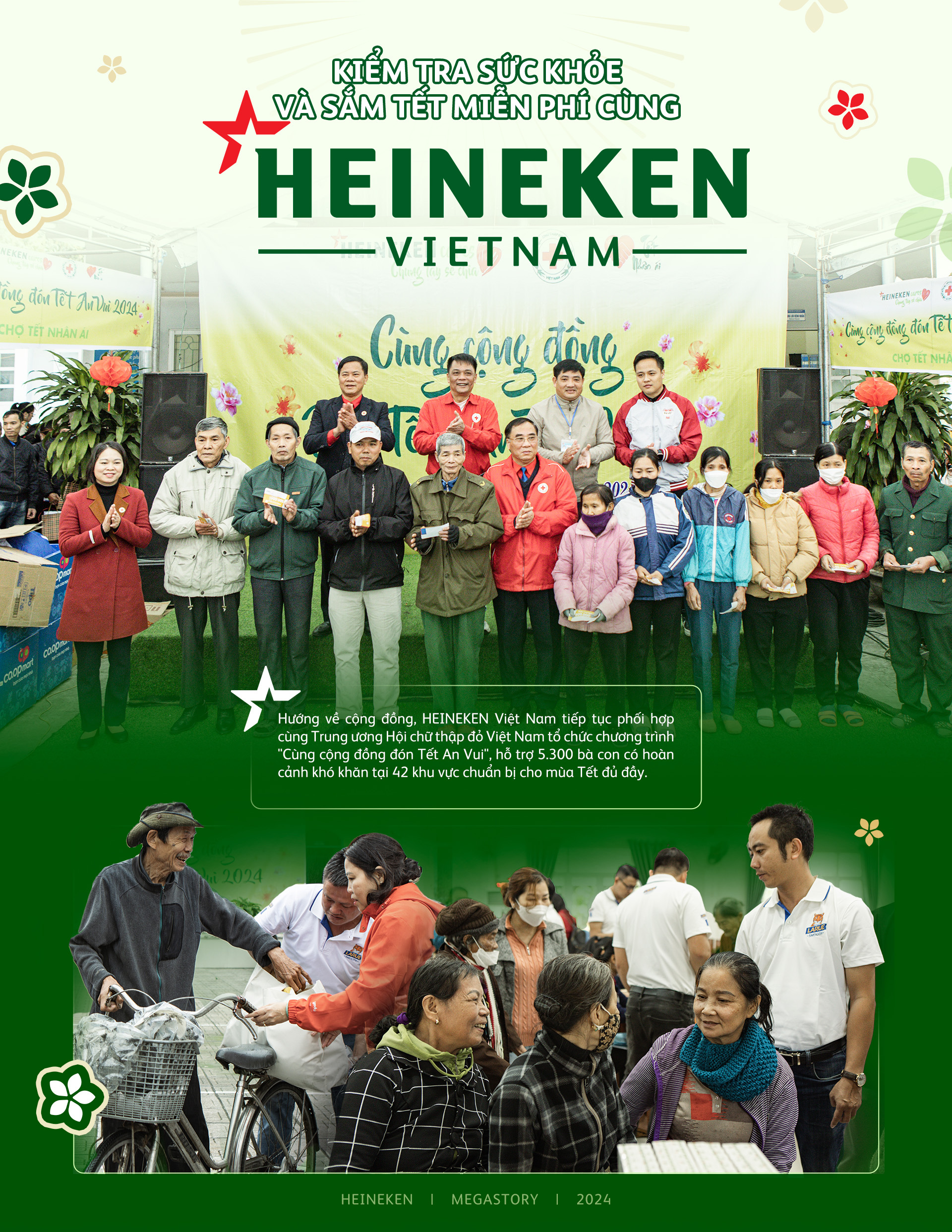 Năm 2024 đánh dấu năm thứ hai HEINEKEN Việt Nam hợp tác cùng Trung ương Hội chữ thập đỏ Việt Nam triển khai chương trình hướng đến cộng đồng này. Mang đến mùa Tết an vui cho mọi nhà, với chương trình diễn ra từ miền Tây Nam Bộ khó khăn, đến miền Trung bão lũ, miền Bắc lạnh giá, doanh nghiệp tiếp tục khẳng định cam kết luôn song hành cùng cộng đồng và con người sau năm 2023 nhiều thử thách.