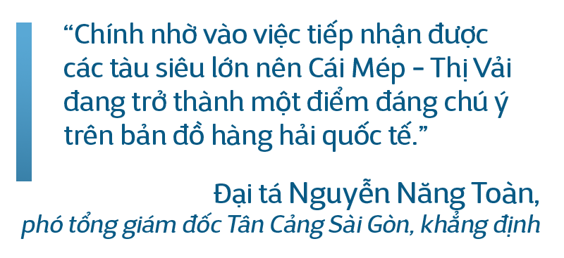 Tại hội thảo về các giải pháp phát triển cảng biển Bà Rịa - Vũng Tàu được tổ chức vào giữa tháng 6-2020, đại tá Nguyễn Năng Toàn, phó tổng giám đốc Tân Cảng Sài Gòn, khẳng định: "Chính nhờ vào việc tiếp nhận được các tàu siêu lớn nên Cái Mép - Thị Vải đang trở thành một điểm đáng chú ý trên bản đồ hàng hải quốc tế".