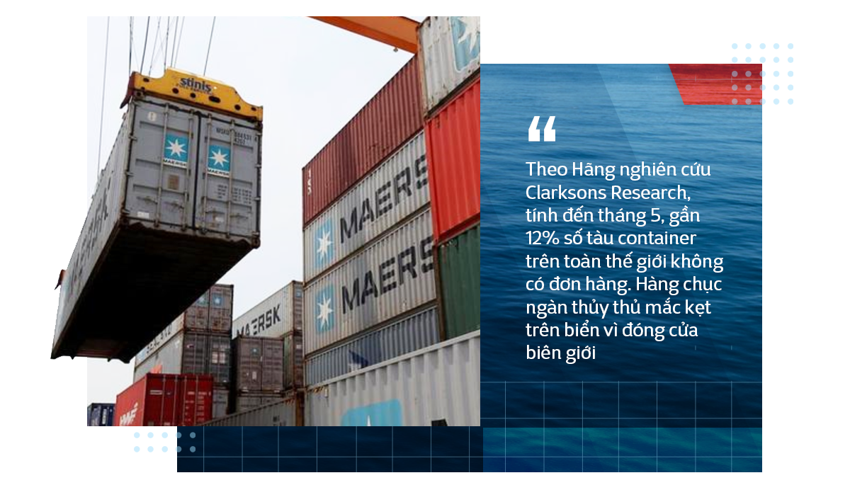 Theo Hãng nghiên cứu Clarksons Research, tính đến tháng 5, gần 12% số tàu container trên toàn thế giới không có đơn hàng. Hàng chục ngàn thủy thủ mắc kẹt trên biển vì đóng cửa biên giới. Trong khi đó, Tổ chức Thương mại thế giới (WTO) ban đầu dự đoán khối lượng thương mại trong năm 2020 sẽ giảm khoảng 30%. "Cú sốc từ phía cầu còn mạnh hơn cả thời điểm khủng hoảng tài chính thế giới. Đây là giai đoạn vô tiền khoáng hậu theo mọi nghĩa" - ông Morten Bo Christiansen, trưởng phòng chiến lược của hãng tàu lớn nhất thế giới AP Moller-Maersk, nhận định.
