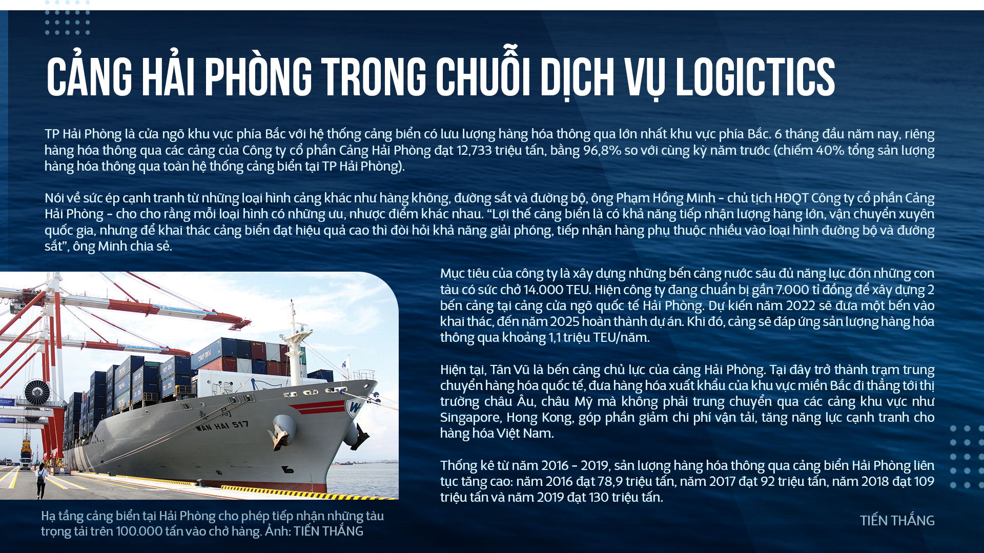 Muốn phát huy lợi thế của hệ thống cảng biển, không chỉ phục vụ hàng hóa của Việt Nam mà còn thu hút hàng hóa của các nước khác, chúng tôi đã kiến nghị Chính phủ có thêm sự quan tâm đầu tư thỏa đáng cho hệ thống kết cấu hạ tầng cảng biển công cộng cũng như giao thông kết nối.