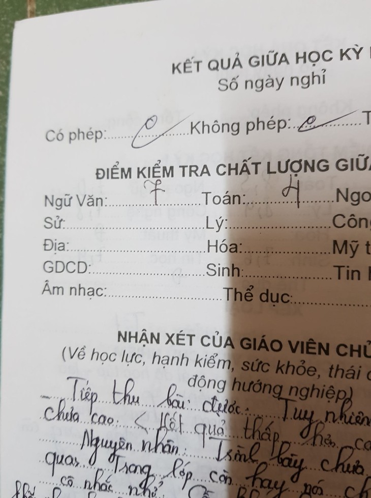 Và duy trì trò "nghịch dại" này đến hết học kỳ 1 năm lớp 7. Chỉ đến khi, kết quả của hành động này được nhận lãnh từ bố - bài kiểm tra cuối kì môn Toán chỉ được 4 điểm, do cô giáo vô tình gặp được. Tuy nhiên, anh chàng đã thoát nạn nhờ nói dối với bố rằng đó là điểm thi học sinh giỏi Toán cấp trường.
