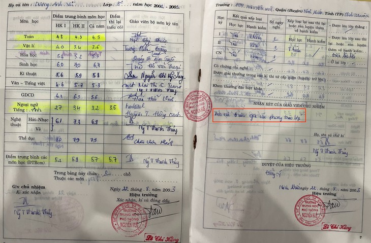 Đính kèm theo dòng trạng thái mang tính "khoe mẽ" trên, nam kỷ lục gia còn cho mọi người nhìn thấy bảng điểm của mình, đầy rẫy những điểm số thấp. (Ảnh: FBNV)