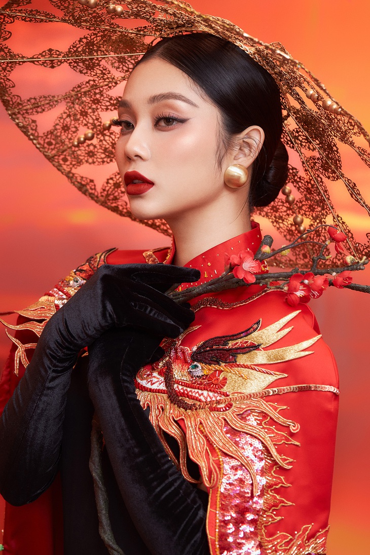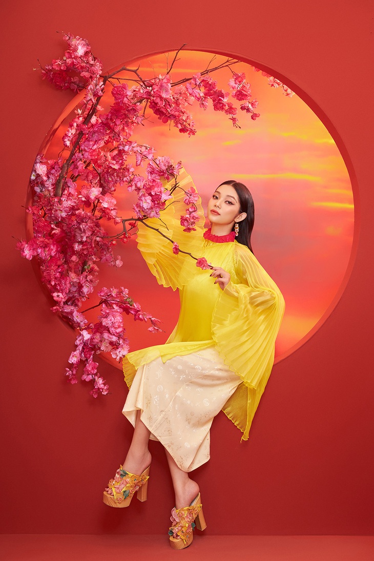 Lâm Thu Hồng khoe dáng ngọt ngào, quyến rũ với áo dài Tết cách điệu