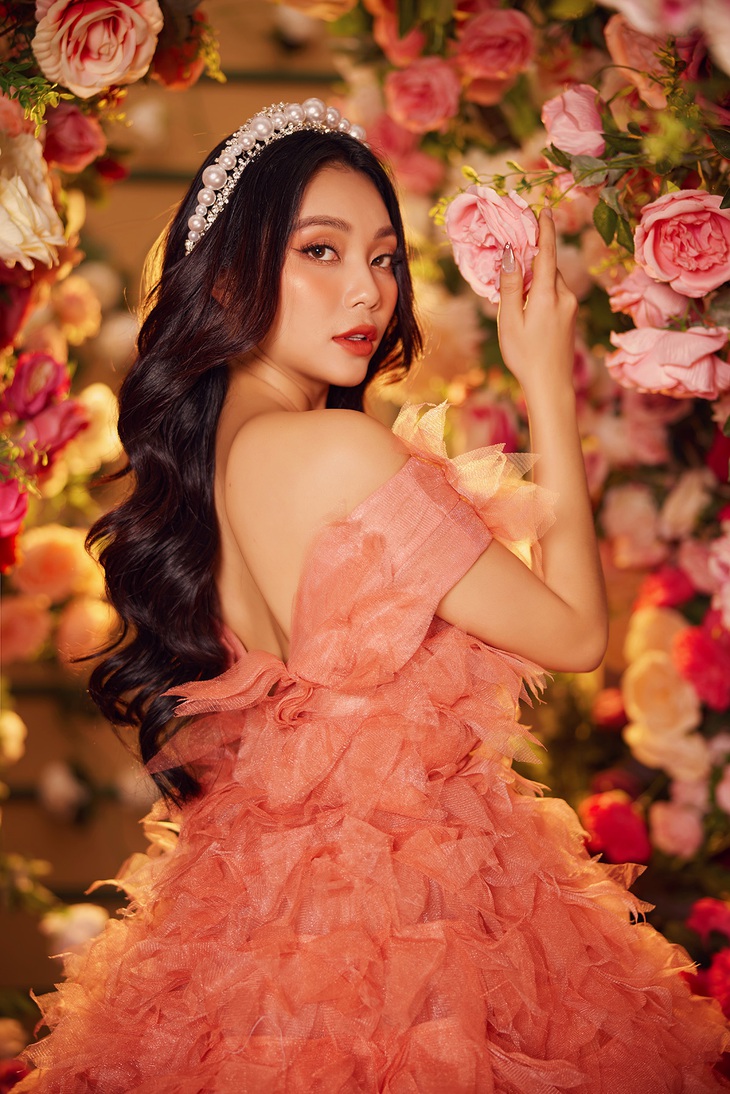 Những bộ trang phục mà Lâm Thu Hồng diện đều được cô và nhà thiết kế lựa chọn kỹ lưỡng sao cho làm nổi bật hình ảnh Lâm Thu Hồng nhất, trong đó có chiếc váy xòe màu hồng cam đậm phong cách công chúa.