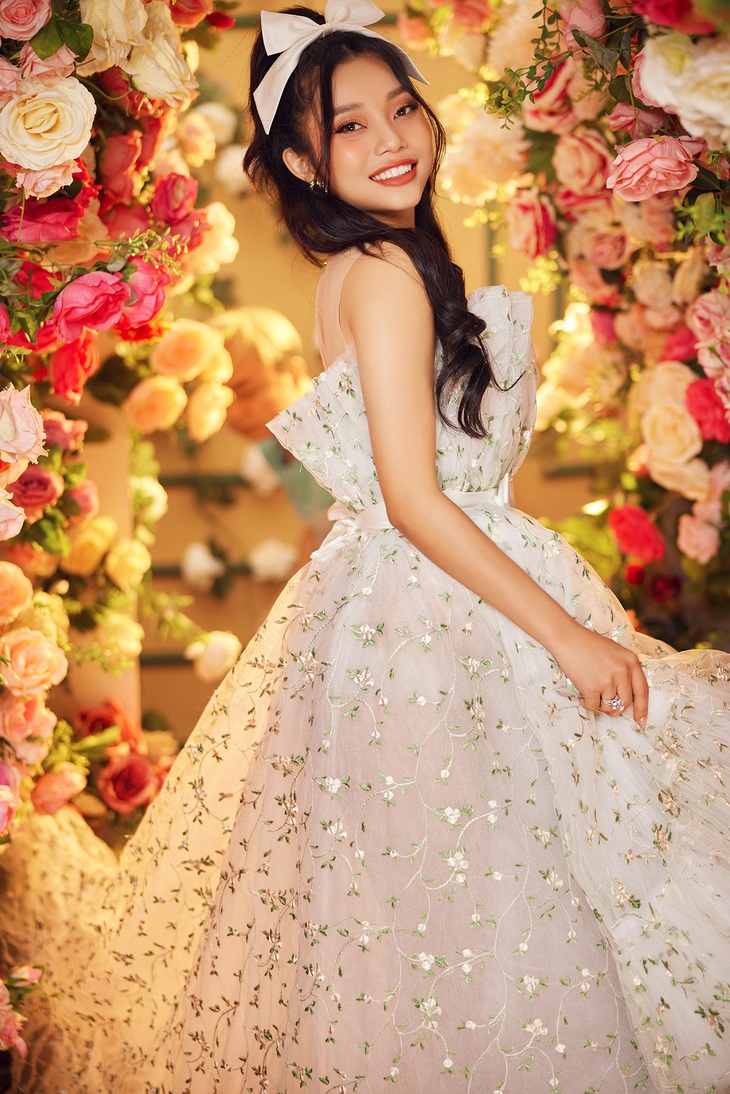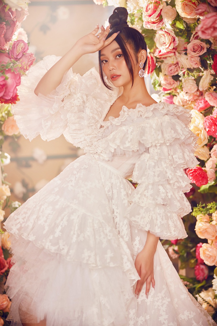 Có khi đó lại là bộ đầm trắng đuôi dài với thiết kế xếp tầng đậm chất cổ điển, nên thơ.