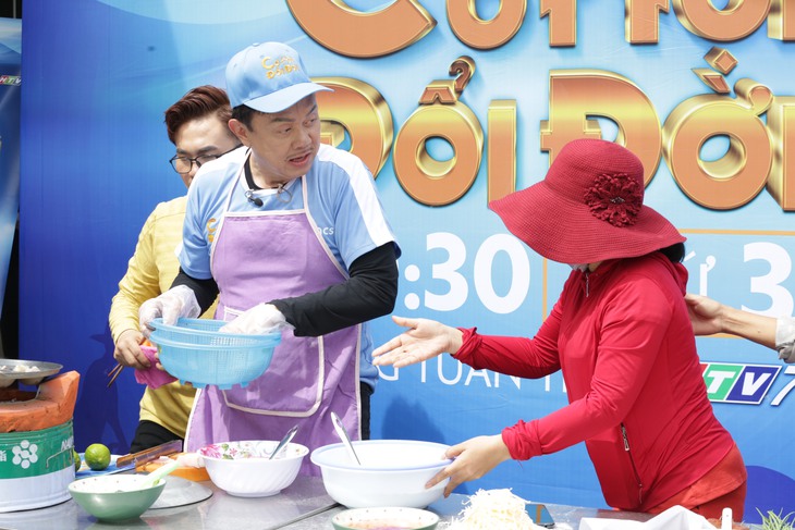 Trong lúc làm bánh, MC Đại Nghĩa thấy đàn anh cứ loay hoay không biết nên làm công đoạn nào nước. Dự cảm không lành, nam MC hỏi nghệ sĩ Chí Tài: “Từ ngày giờ anh đã bao giờ làm bếp chưa?”. Bị hỏi bất ngờ, cố nghệ sĩ lắc đầu nói: “Chưa bao giờ làm bếp” khiến khán giả bật cười. Bà con địa phương đứng kín xung quanh cũng nhiệt tình chỉ cách làm nhưng mỗi người chỉ một kiểu không khác gì đang “tung hỏa mù” khiến cố NS Chí Tài phát “quạu”: “Trời ơi, bà kêu đổ đầy rồi lại kêu đổ vừa vừa thôi. Cũng là bà thôi đó”.