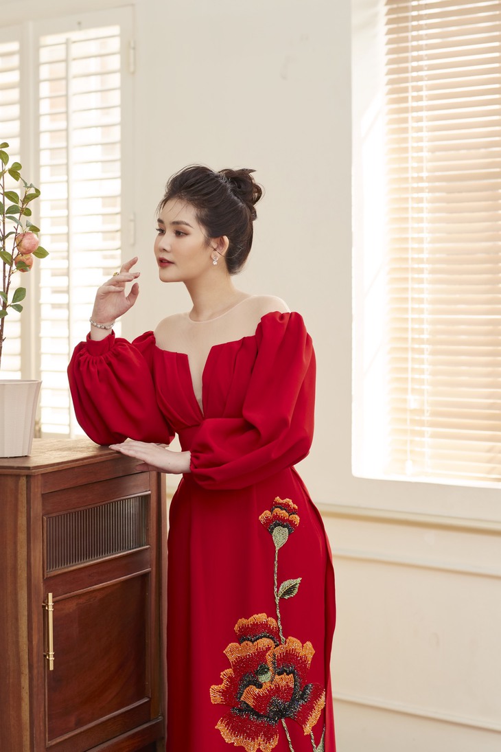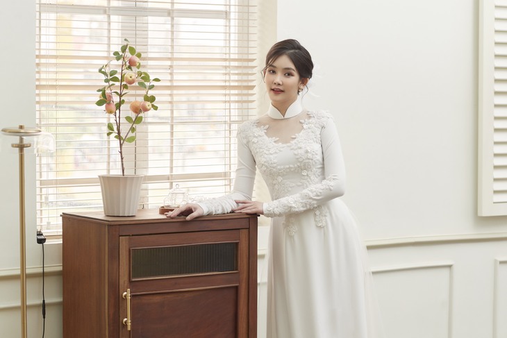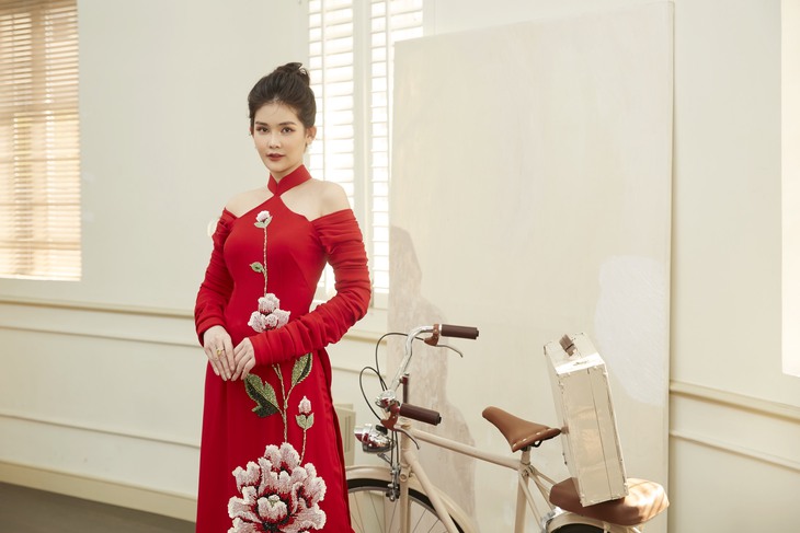 Lê Âu Ngân Anh hóa nàng thơ trong loạt áo dài độc đáo của Minh Châu