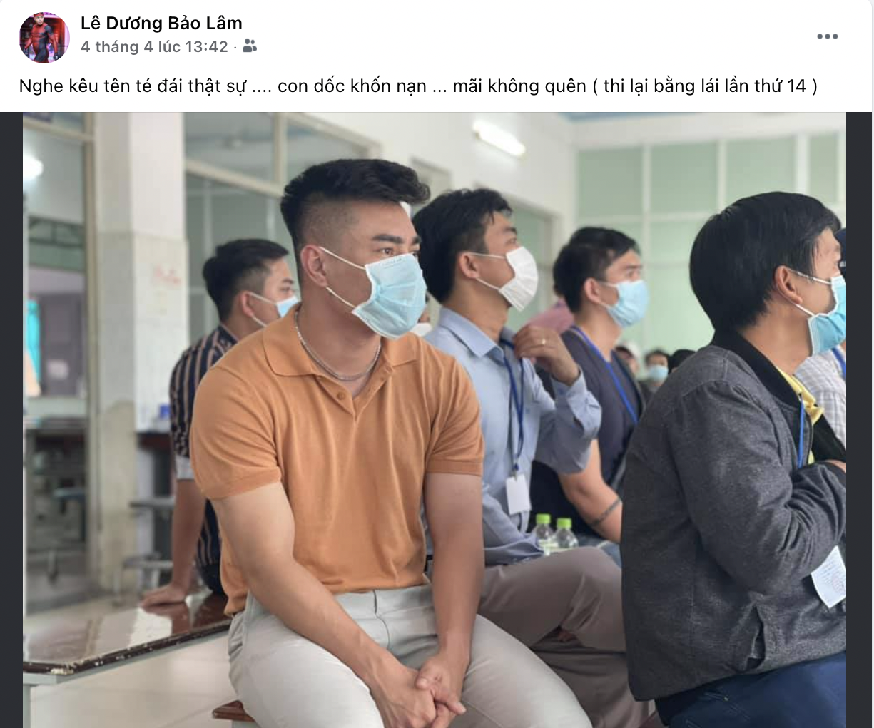 Diễn viên hài đến từ Đồng Nai chia sẻ bức ảnh chính mình đang ngồi xếp hàng chờ thi giấy phép lái xe nhưng dòng mô tả phía trong dấu ngoặc thì lại ẩn chứa biết bao cảm xúc: "Thi lại bằng lái xe lần thứ 14".