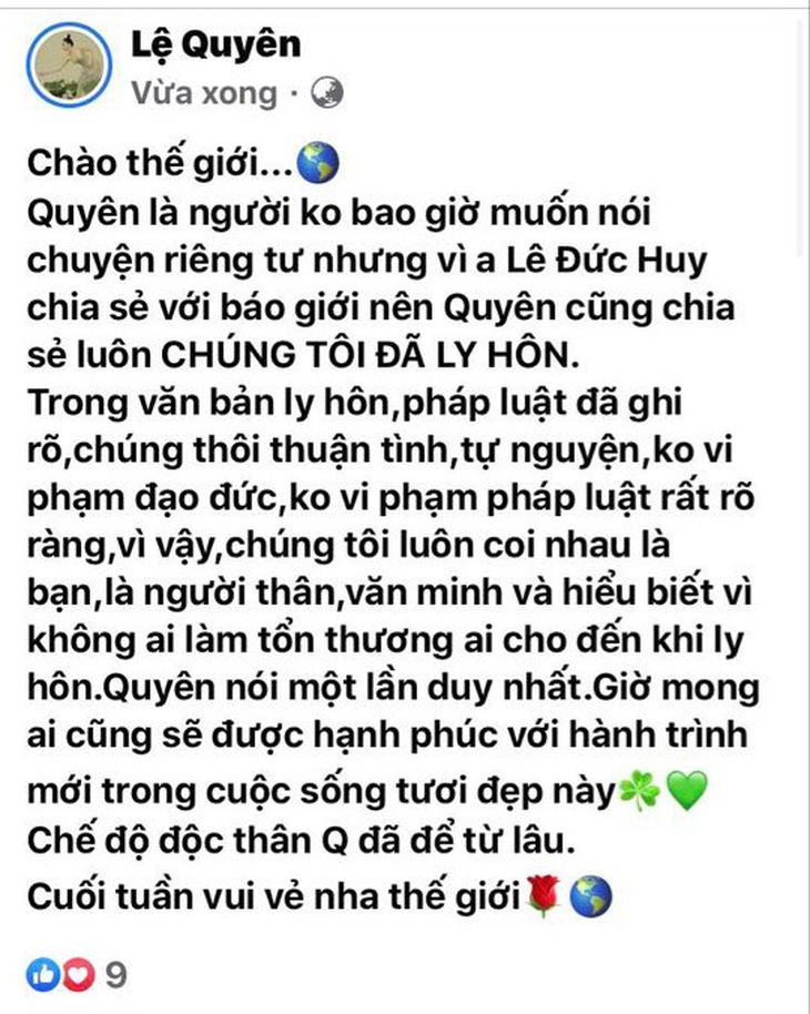 Lệ Quyên xác nhận ly hôn