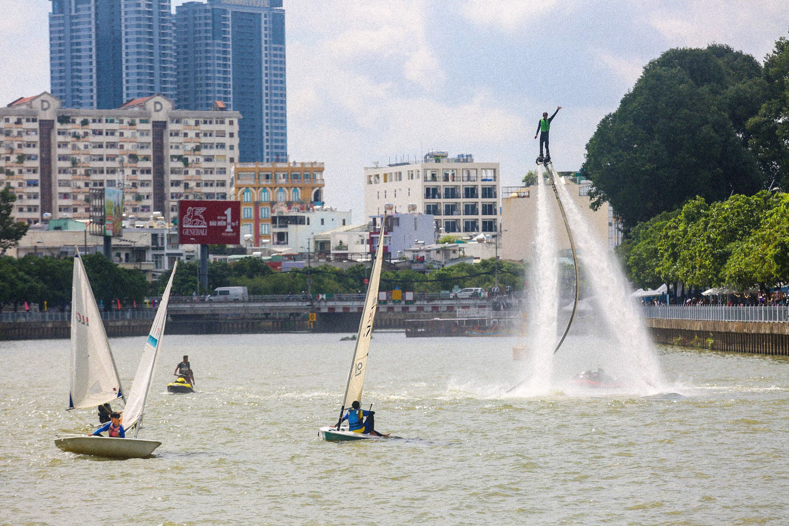 - Trình diễn buồm, mô tô nước, thuyền sailing, ván chèo đứng sup, dù lượn. Từ 19h - 20h. Bến Bạch Đằng, đường Tôn Đức Thắng, quận 1.