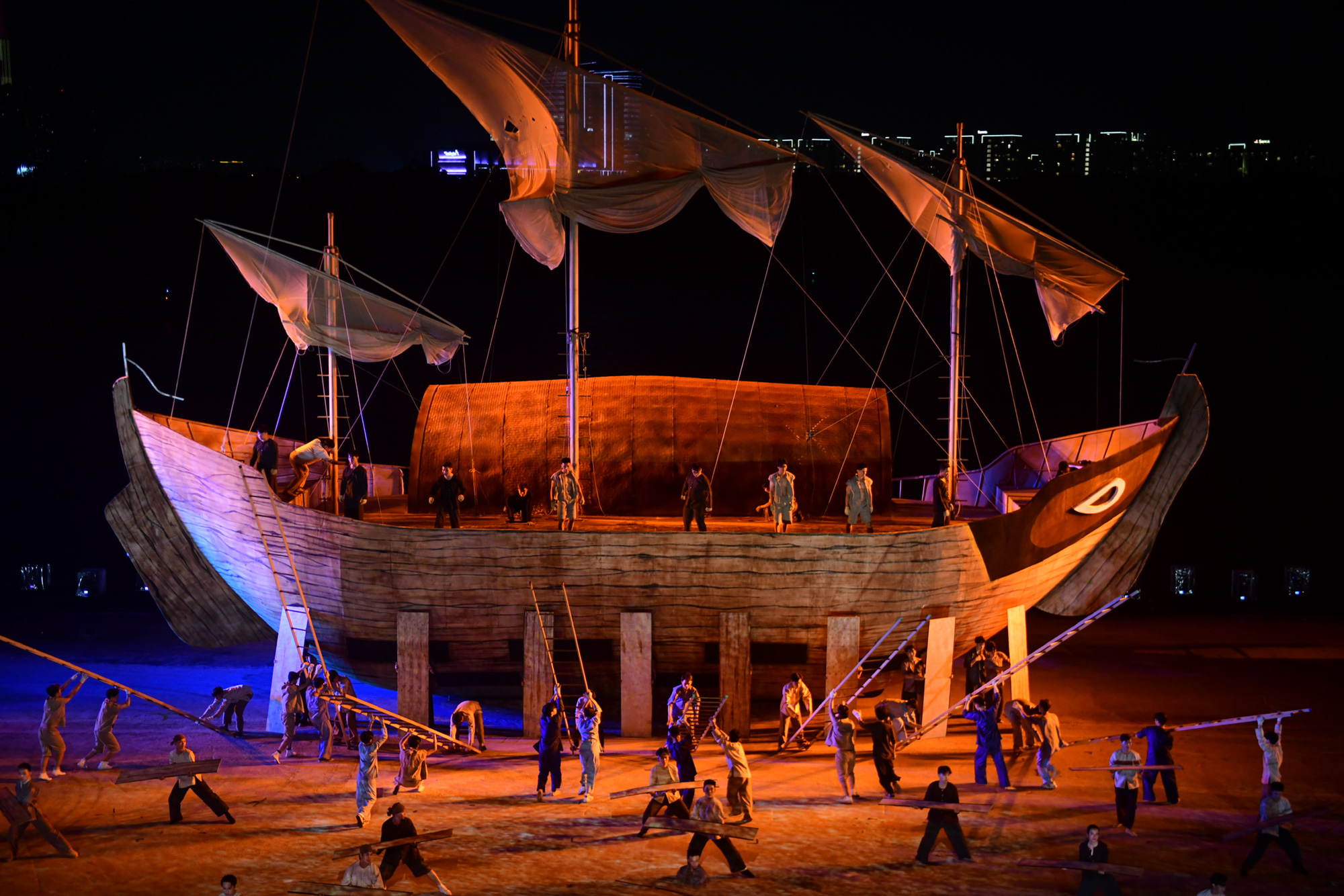 - Chương trình nghệ thuật khai mạc lễ hội. Đại nhạc kịch ngoài trời “Bến tàu huyền thoại”. 20h - 21h30 ngày 31-5.