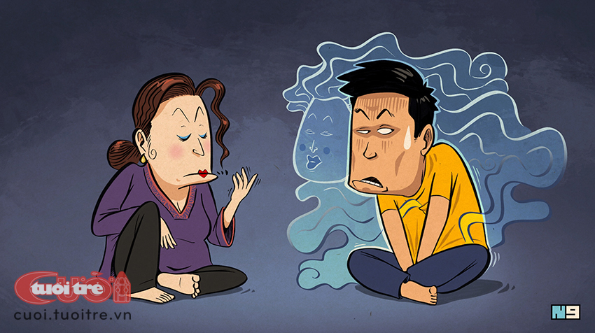 Anh học trò mắt sáng rực: "Cô hỏi vong giùm! Vong theo con lâu như vậy, sao không share tiền phòng, tiền điện, tiền mạng với con. Vong thôi mà, đâu phải má người ta... Hu...hu...hu...".
