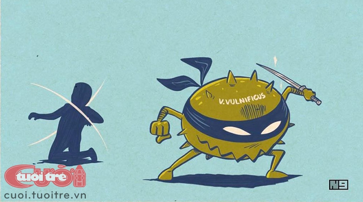 - Toàn cõi ta bà không có vi khuẩn ăn thịt người, chỉ có vi khuẩn gây hoại tử mô, bình dân gọi là thối thịt, nhìn hao hao bữa chén thịt sống. Vibrio vulnificus đang dậy sóng, là đại diện xuất sắc của dòng xơi thịt người. Họ Vibrionaceae lành hiền, chủ yếu “ăn chay”, như V.choleare (tả), V.parahaemolyticus (viêm ruột), chỉ riêng nghịch đồ V.vulnificus ngã mặn, mà thịt người mới chịu!
