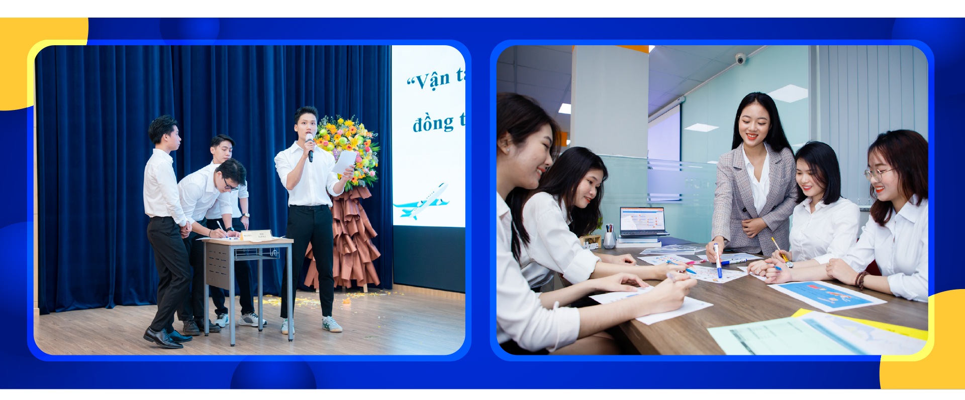 Trong môi trường doanh nghiệp thật, tư duy ấy được thử thách rõ nét nhất. Sau khi quen với nhịp độ công việc qua các dự án chuyên môn, sinh viên tiếp tục bước vào học kỳ doanh nghiệp với thời gian làm việc thực tế trong vòng từ 3 đến 6 tháng tại các doanh nghiệp đối tác.