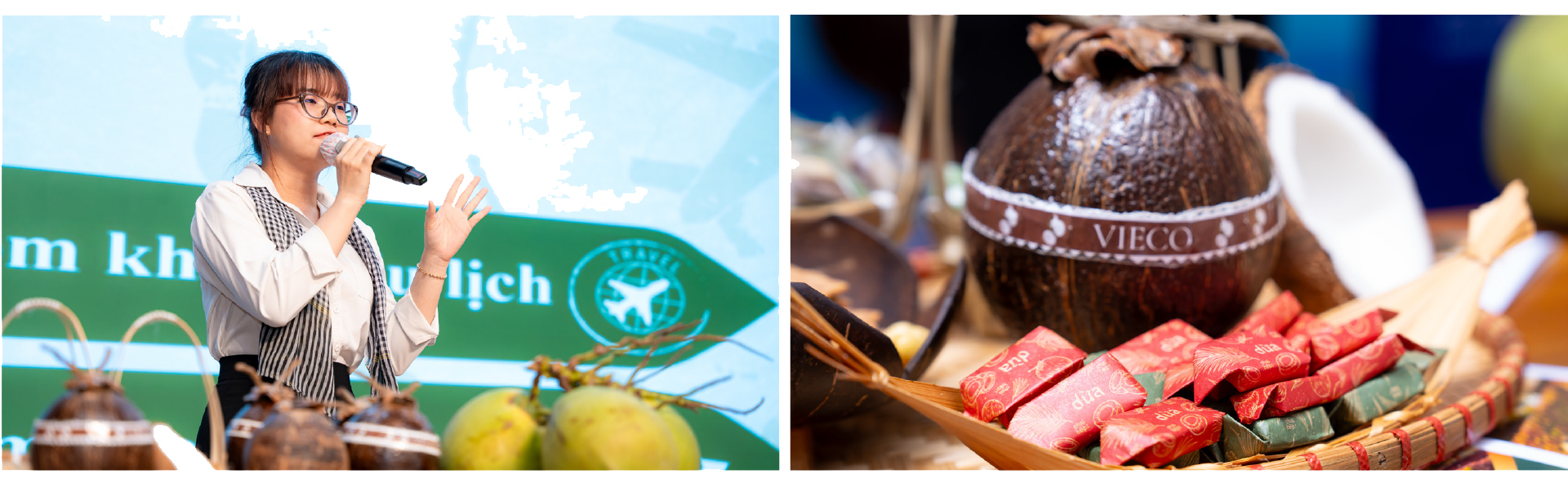 Tiến thêm một bước nữa, các dự án của sinh viên tiếp tục ghi dấu ấn tại các cuộc thi quy mô lớn hơn như HUTECH Startup Wings. Ở mùa giải 2025, sinh viên Khoa Quản trị kinh doanh mang đến dự án VieCo - Kẹo dừa trong trái dừa, lọt vào top 6 chung cuộc và đạt Giải Dự án được yêu thích nhất.
