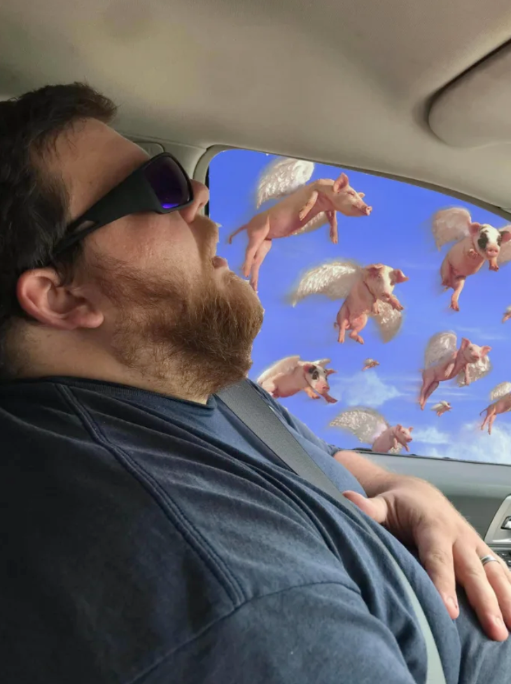 Sharea và Nate Overman là vợ chồng với nhau đã được nhiều năm. Họ có 3 cậu con trai nhỏ. Thế nhưng cuộc sống của gia đình này chắc chắn sẽ luôn là những chuỗi ngày "cười mỉm chi cho đến cười khoái chí" khi hình ảnh troll nhau được cô vợ chẳng ngần ngại đăng đàn lên mạng xã hội. Đã thế, cô vợ hài hước còn nhờ dân mạng "nhẹ tay" chỉnh sửa để bức ảnh ghi lại khoảnh khắc anh chồng đang ngủ gật trên xe hơi được sống động hơn.