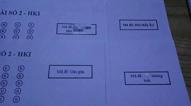 Để tránh tình trạng "quay cóp" trong thi cử, kiểm tra, nhiều thầy cô đã dùng tới biện pháp "mạnh" để thẳng tay loại trừ: Thay đổi cách đặt mã đề. Theo đó, bằng việc áp dụng các câu nói "hot hit" trên mạng xã hội hoặc chỉ thay đổi đậm nhạt ở từng mã đề, đã khiến đám học trò manh nha "cọp-pi-dê" đành... quay đầu là bờ, bỏ ngay ý định ban đầu.