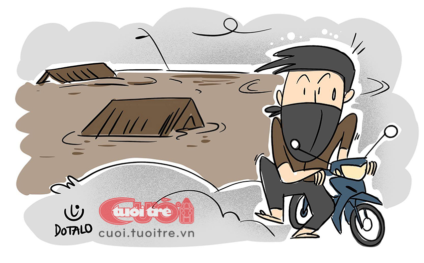 Từ đầu tháng 10, vùng quê Hà Tĩnh đang trong cơn đại hồng thủy, người người rủ nhau đi tới chỗ cao để tránh lũ. Nhiều người vội vàng chỉ kịp đem lương thực, nước uống... xe máy ai nghĩ tới chuyện phải vác đi theo.