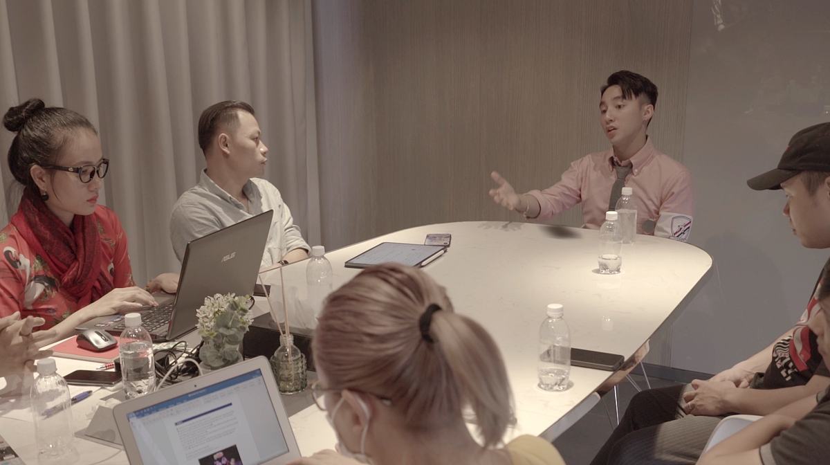 Sơn Tùng trong buổi làm việc với êkíp để chuẩn bị cho Sky tour.