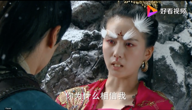 Cặp lông mày mọc dài trắng xoá trên mặt cùng 2 chiếc răng cửa và lối make up đậm của Lưu Thi Thi trong phim Hiên viên kiếm đã khiến nữ diễn viên chẳng khác nào một chú thỏ tinh.