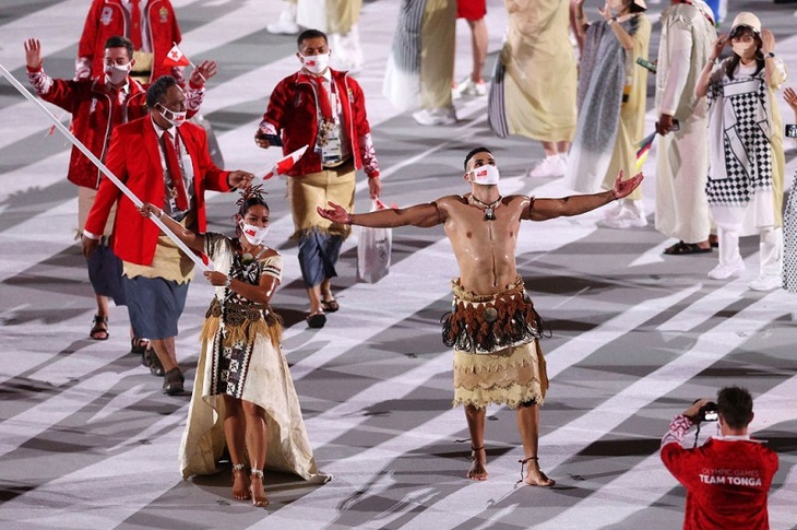 Tuy bị loại sớm ở đấu trường đỉnh cao thế giới, nam vận động viên này vẫn được nhắc đến với màn "khoe thân" vô cùng ấn tượng, mang đậm ý nghĩa truyền thống. Trong trang phục quê hương mình, Pia Taufatofua đã nhắc thế giới nhớ đến quốc đảo nhỏ bé ở Châu Đại Dương.